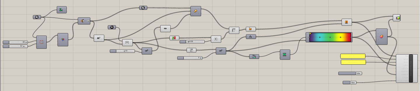 The aim was understand how the attractors work with the volumes. I have used the voronoi diagram to create which was extruded with different heigths. The height of each ones is connected to the distance between center of the area and the attractor point. I could move this where i want. The fillet is sensible to the the distance by the attractor to change the smooth.