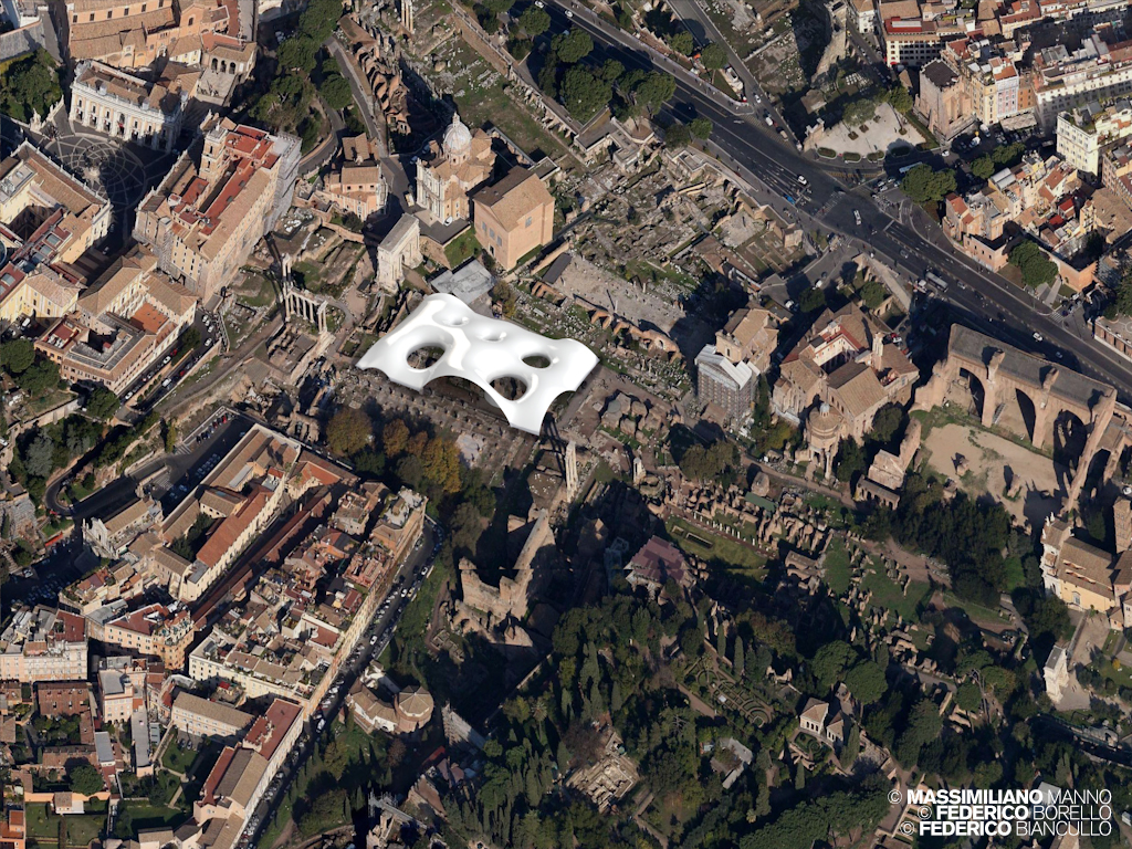 The parametric nature of the definition process of the project and the ability of the latter to be defined as a function of external parameters, related to the environment, has allowed us to hypothesize a coherent architectural scenario in two antithetical sites for configuration and meaning as the Contemporary Art Museum MAXXI and the Imperial Forums in Rome.